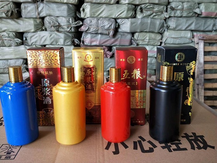 蒙砂酒瓶是在制品玻璃上,粘附一定大小面積的玻璃色釉粉,玻璃瓶廠經過580~600℃的高溫烘烤,使玻璃色釉涂層凝結在玻璃外表,并顯現出具有與玻璃主體不同顏色的一種裝飾辦法。粘附玻璃色釉粉,可用排筆涂刷,亦可用膠輥滾涂。經過絲印加工,能夠得到蒙砂面的樓空圖案。 其辦法是:在玻璃制品外表上,絲印一層由阻熔劑構成的圖案紋樣。